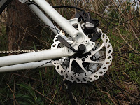Vブレーキだと、リムを挟んで制動するため、リムの塗装が取れ、薄くなっていくが、ディスクブレーキの場合はその心配はない。