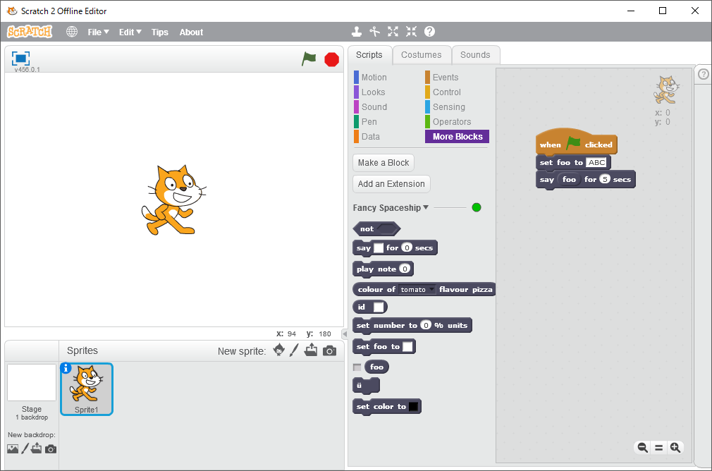 では、サンプルを使ってスクラッチ用の拡張ブロックを作ってみよう。