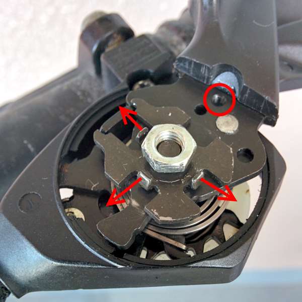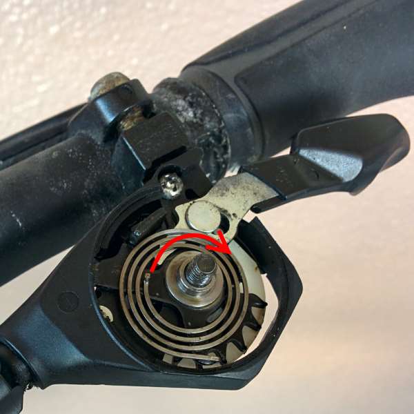 コレで矢印の方向に回せば、戻ってくる方向にテンションがかかって正常に機能する。