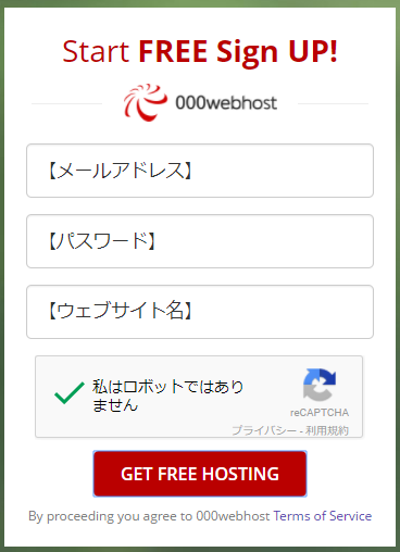 サインアップのフォームに必要事項を入れましょう。