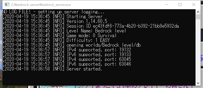 単純に、 bedrock_server.exe を実行すればサーバーは起動する。