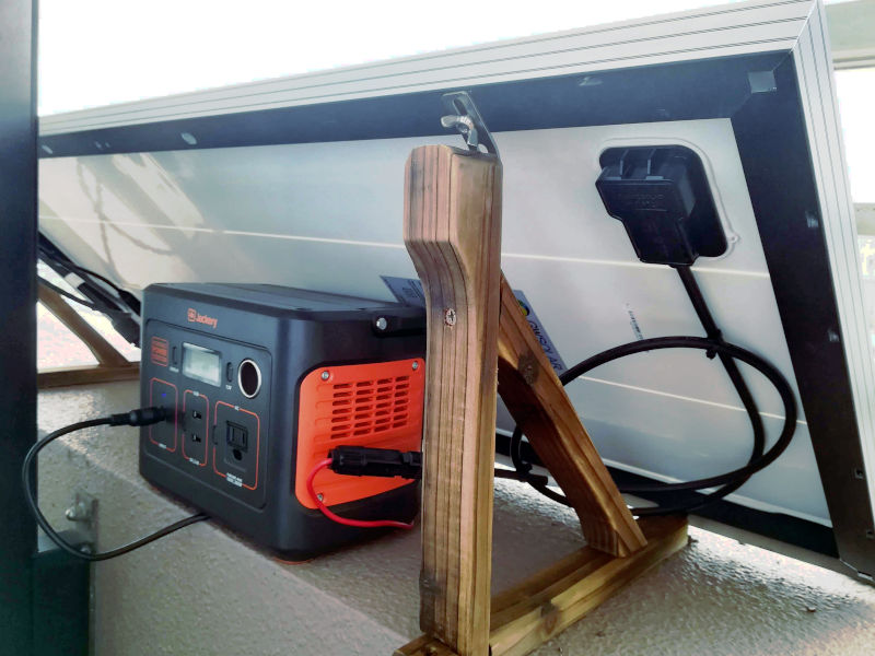 変換ケーブルの長さは1mちょっとのため、マンションのベランダ等に置いたソーラーパネルとバッテリーを接続するには、バッテリーも屋外に置いて置かないといけません。