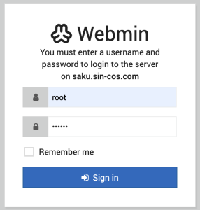 Webmin install complete. You can now login to https://hostmei.sakura.com:10000/ as root with your root password.