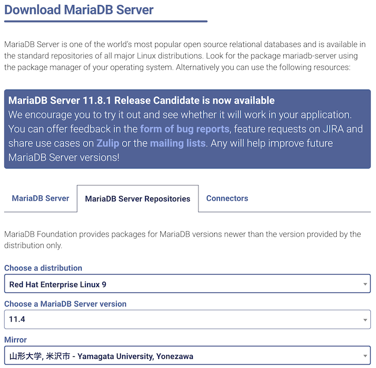 baseurl = https://ftp.yz.yamagata-u.ac.jp/pub/dbms/mariadb/yum/11.4/rhel/$releasever/$basearch