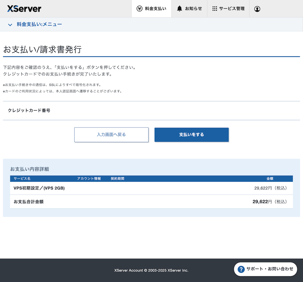 XServer VPSの契約にはXServerアカウントが必要とのことなので、