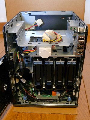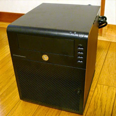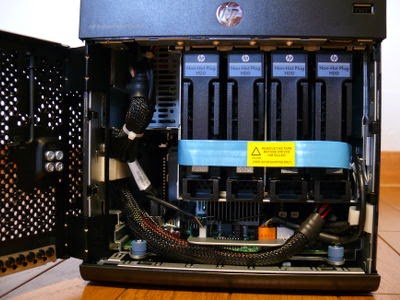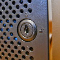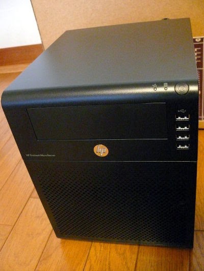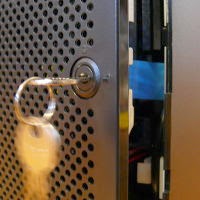 さて、サーバ機(ProLiant MicroServer N54L)の扉に鍵を挿しこんで、開けてみる。