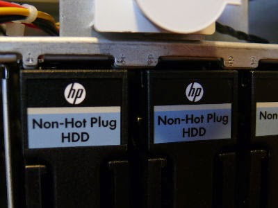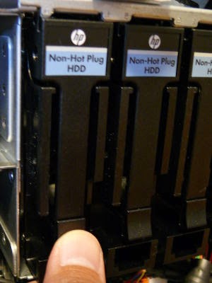 さて、4台のHDDは、どっちが1番めか?それは、ベイの上部に打刻された数字を見れば分かる。ちょっと汚くて見難いけど。