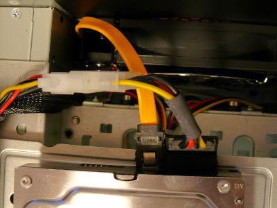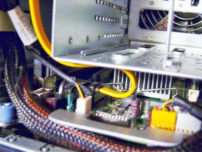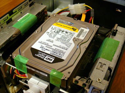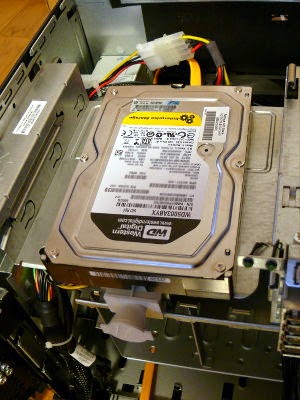 ハードディスクを上に置いてそれぞれのけエーブルをつなげば、とりあえず起動できるじようたいに。