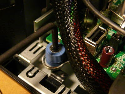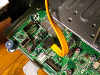 SATAケーブルは、本体下部のマザーボードに挿し込む。